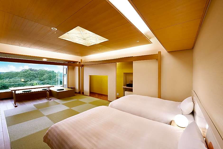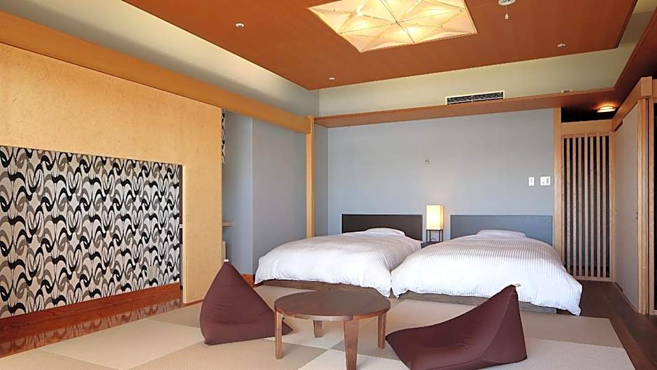 The twin room includes a private bathroom, well-fitted with a bath, a shower, a bidet, a hairdryer and slippers. The spacious air-conditioned twin room offers a flat-screen TV with satellite channels, tatami, a tea and coffee maker, a safe deposit box as well as lake views. The unit has 2 beds and 3 futons.