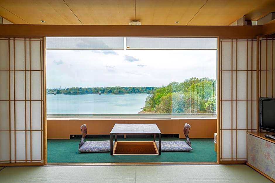 The twin room includes a private bathroom, well-fitted with a bath, a shower, a bidet, a hairdryer and slippers. The spacious air-conditioned twin room features a flat-screen TV with satellite channels, tatami, a tea and coffee maker, a safe deposit box as well as lake views. The unit has 2 beds and 4 futons.